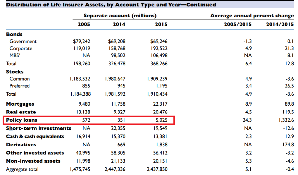 ACLIのデータを見ると、分離勘定の契約金貸付の額が2014年では3.51億ドルでしたが、2015年には50億ドルにまで急増しているんですよね。怪しい兆候であると見るべきなのでしょうか...?