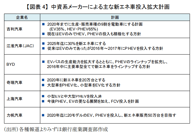 中国の自動車メーカーは今後は電気自動車だけでなく、プラグインハイブリッド車の製造も増やしていくようですが、小型車は電気自動車、大型車はプラグインハイブリッド車という棲み分けがされるようですので、台数面で電気自動車がメインとなるでしょう。