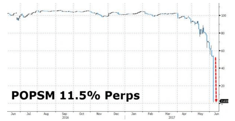 このときバンコ・ポピュラールはデフォルトに陥ったわけではありませんが、ポピュラールは自身が発行したAT1、AT2債を損失補填のために利用しています。当然これら債券価格は大暴落、ほぼ紙くず化しました。