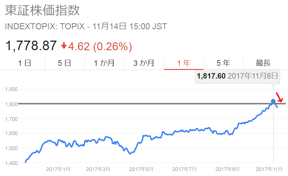 最近の日本株の下落も、TOPIXが1800に達した直後から始まっています。これも鉄棺の蓋という呪いによるものなのでしょうか?(笑)