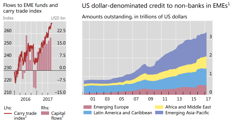 最近の新興国市場への資金流入は、もっぱら米ドルを売って新興国通貨を購入したり、その通貨で新興国資産に投資をするという、ドルキャリートレードによってもたらされたものでした。