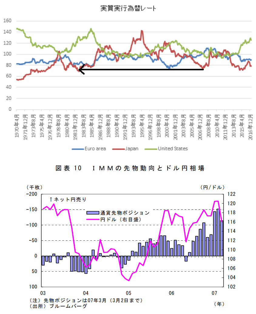 これは為替市場で円を売るので、大きな円安圧力となりました。2007年6月には、日本円の実質実効為替レートがプラザ合意以前の水準にまで下落しました。