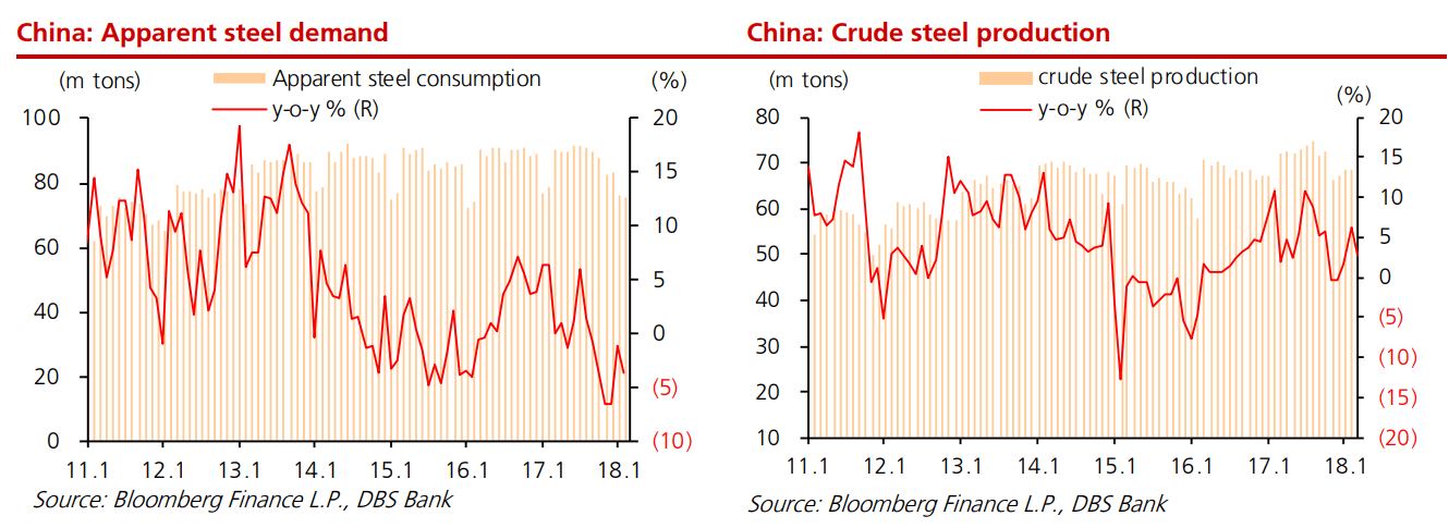 しかし考えてみて下さい。中国は昨年から今年初めまでの冬季期間中、鉄鋼生産抑制策をとり、中国最大の鉄鋼生産量を誇る河北省に対してはより直接的なな鉄鋼生産抑制策を課したにも関わらず、2017年第4四半期は増産だったのです。