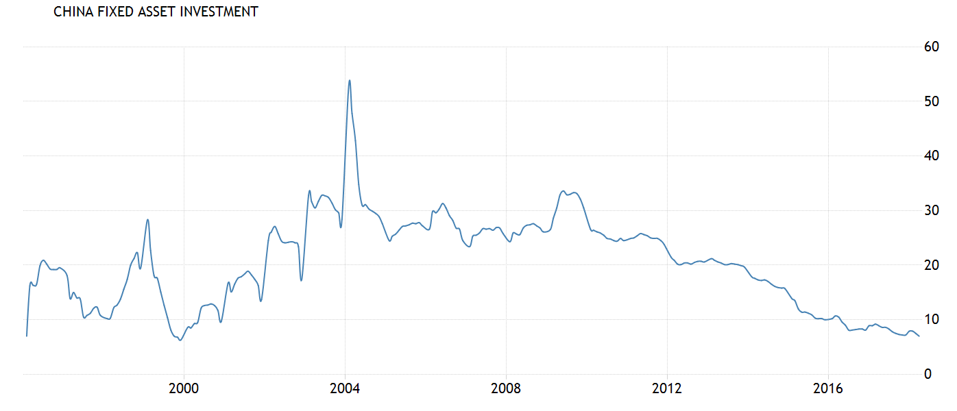 とはいえ、2017年の中国固定資産投資の伸びは、1999年以来の最低水準にとどまりました。