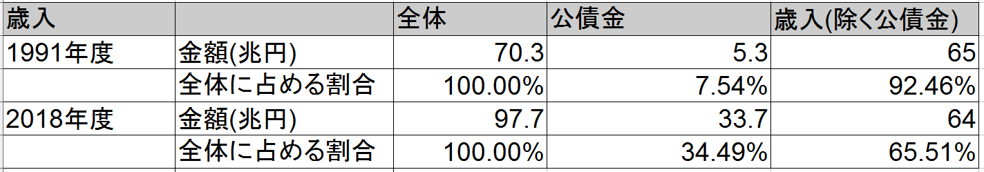 27年前と比較して、現在は公債金を除く歳入が減少しているんですね。支出は増え続けているのに歳入はほとんど変わらず。