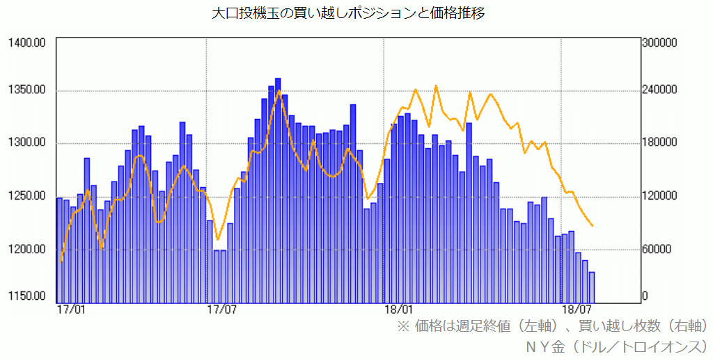 以前のメルマガで、4月半ば頃から現在に至る金価格の下落の大きな要因には、大口投機家による買い越しポジションの減少があると話しました。(【金のメルマガ No.3】「金価格の歴史的上昇トレンド」が新興国から始まる)