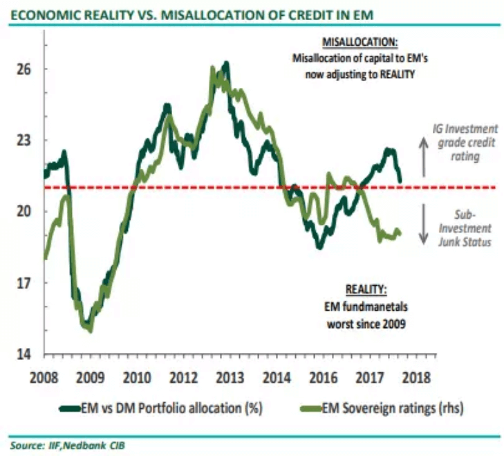 しかし2016-17年は過去の動きから乖離し、新興国国債の格付けが低下したにも関わらず、投資家はポートフォリオに占める新興国セクターの割合を増やしていったのです。