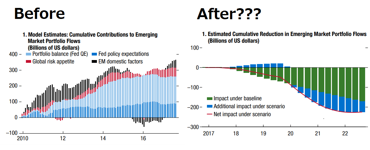 IMFは、南アフリカ、メキシコ、チリ、マレーシア、コロンビアといった国々で、いずれ各国GDPの1-2%というバカにならない規模の資金流出が起きる可能性も一つのシナリオとして考えています。