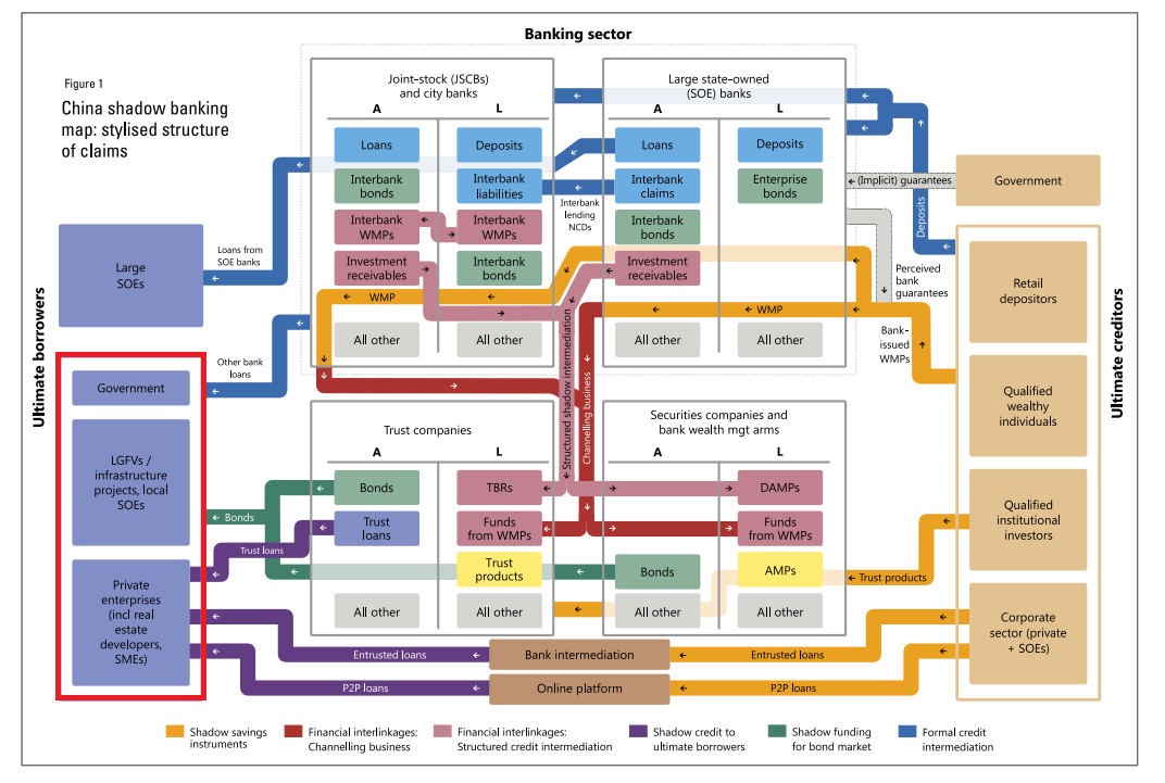大きく3つ存在する資金調達手法のうち、10兆ドルの市場規模があったと言われるシャドーバンキングについては、2017年初から始まった中国当局の金融規制により供給が伸び悩み始めています。