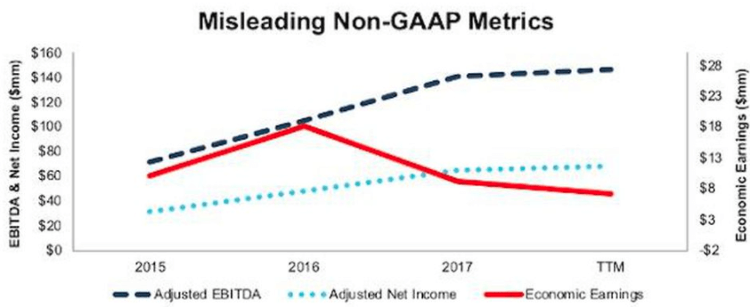 このようにEBITDAを用いた財務分析は危険な経営をしている企業のリスクを過小評価する問題がありますが、さらに問題なのは現在のレバレッジドローンの貸し出しでは「調整済み」EBITDA(Adjusted EBITDA)がよく利用される点にあります。