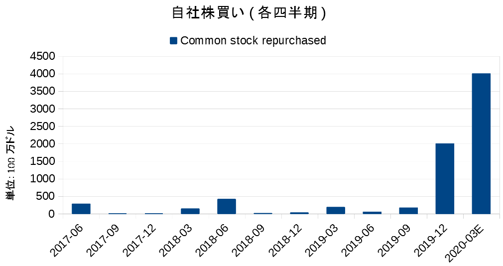 今年は大体100億ドルの自社株買いとなる見通しであり、今年から2022年の3年間で計300億ドルの自社株買いを行う予定です。