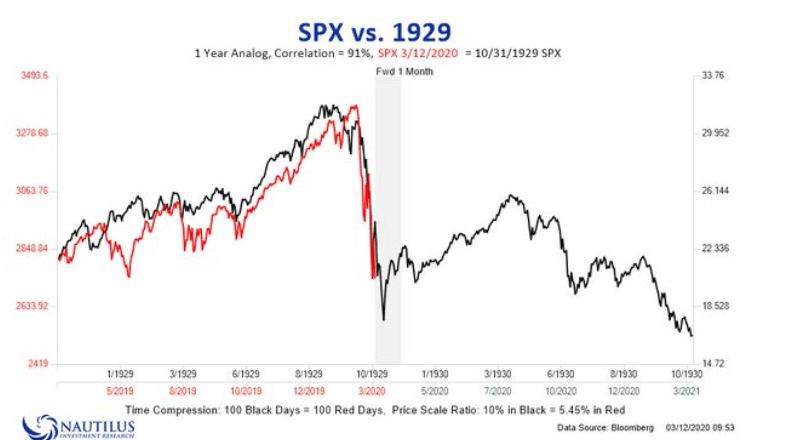 先週の大暴落は1929年のウォール街の大暴落に匹敵するものであり、米国株は直近のピークから株価が20%以上値下がりし弱気相場入りしました。