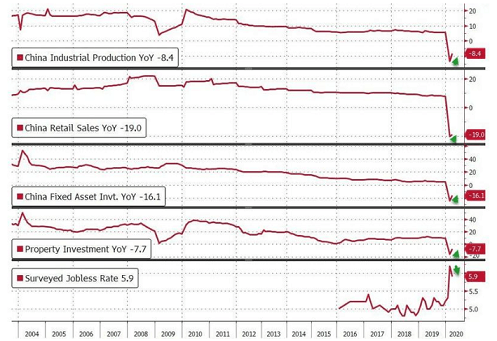 COVID-19の拡大が3月初めに収束した中国ですが、1-3月期の経済成長率が前年同月比-6.8%と1992年以降初のマイナス成長となり、3月も経済はほとんど回復しておらず、小売売上高と固定資産投資の前年同期比伸び率は市場の期待を大きく裏切るものでした。