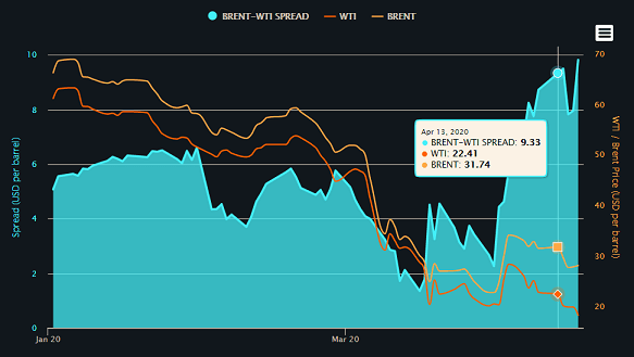 原油貯蔵スペースがないため、本日21日の期日を前に、現物の受け渡しを避けたいトレーダーらが翌月限への乗り換えに殺到したために起こりました。
