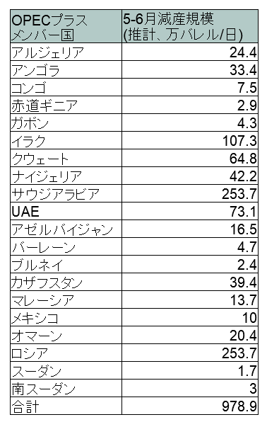 - 20年5月-6月:日量970万バレル