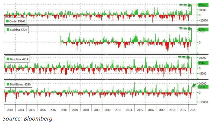 また北米の石油産業の一大原油貯蔵地で、WTI現物の受け渡しが行われるクッシング在庫も過去最大の伸びを記録しました。