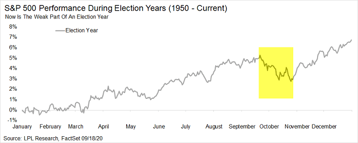 過去、大統領選のある年の10月の米国株リターンは冴えない傾向にあります。