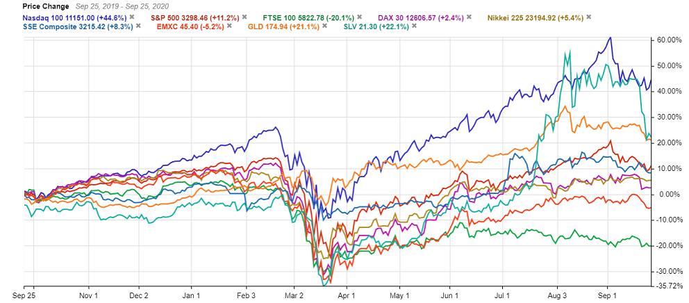 3月のコロナ禍以降、Fed、ECB、日銀による500兆円を超える規模の量的緩和が市場に資金を供給するなか、個人投資家の投機が加わり、米国株はハイテク株中心に上昇傾向が続いてきました。