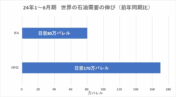 他方OPECが公表している数字によれば、昨年上半期の世界の石油需要が日量101.5百万バレル程度、今年上半期は日量103.2百万バレル程度であり、差を取ると日量170万バレルほどあります。両者の数字に倍以上の開きがあるのです。