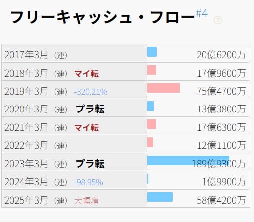 ●総評共同印刷は無借金なのは高評価だが、配当の原資であるフリーキャッシュフローを安定して稼ぐ実力がなく、長期安定して配当を支払う能力は低い。