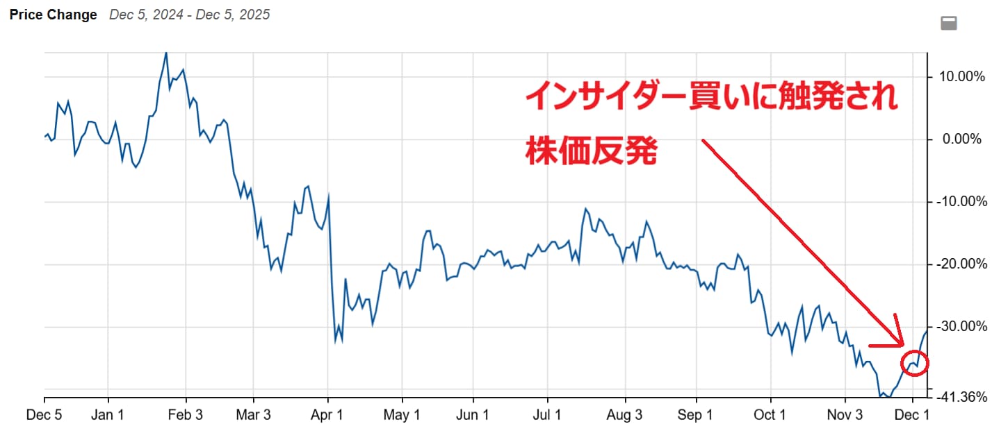 株価が大きく下げた中、先週に経営陣が巨額のインサイダー買いをしたため、株価が大きく反発するようになりました。
