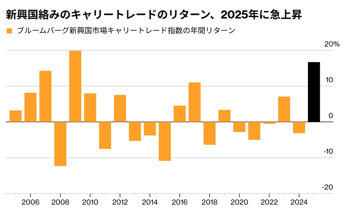 今年はキャリートレードを通じて高利回りの新興国資産に投資する動きが顕著に進みました。そのリターンの大きさは2009年以来です。