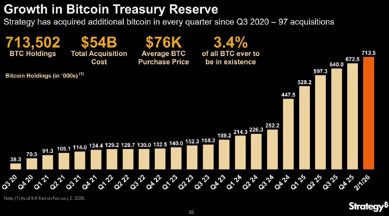 ビットコイン発行上限2,100万枚の3.4%に相当し、DATが保有するビットコインのおよそ7割をストラテジー単独で抱えています。