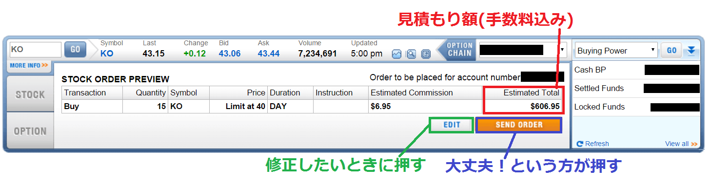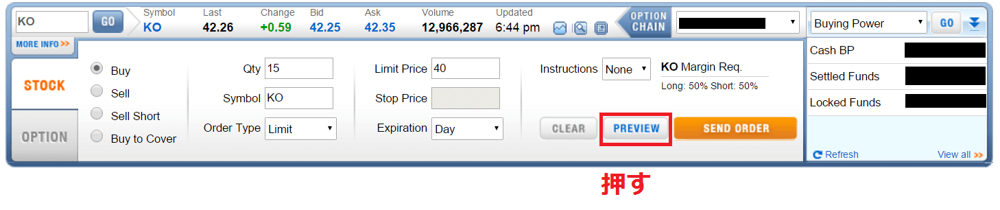 Firstradeの売買画面の操作