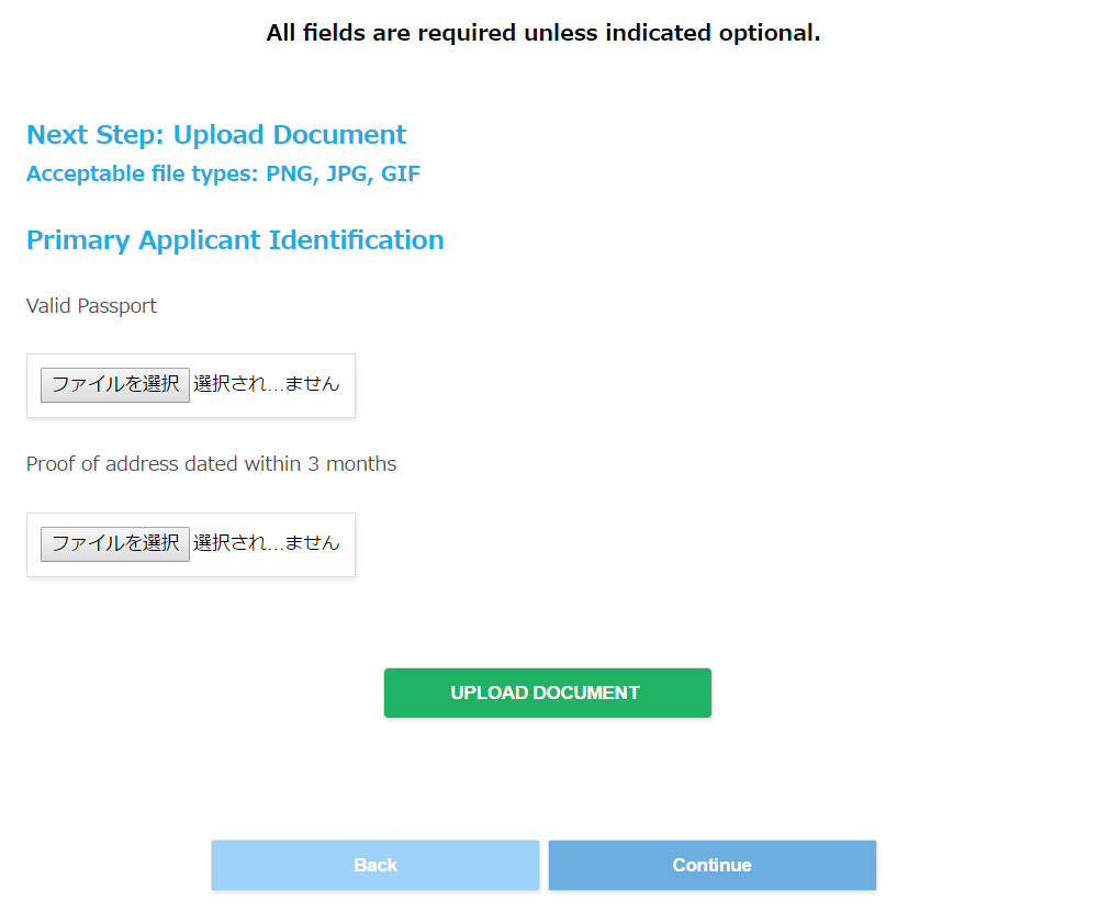 このうち私が説明できるのは2番目の書類のアップロードまでです。その先は私自身経験していないので本記事で説明することはできません。